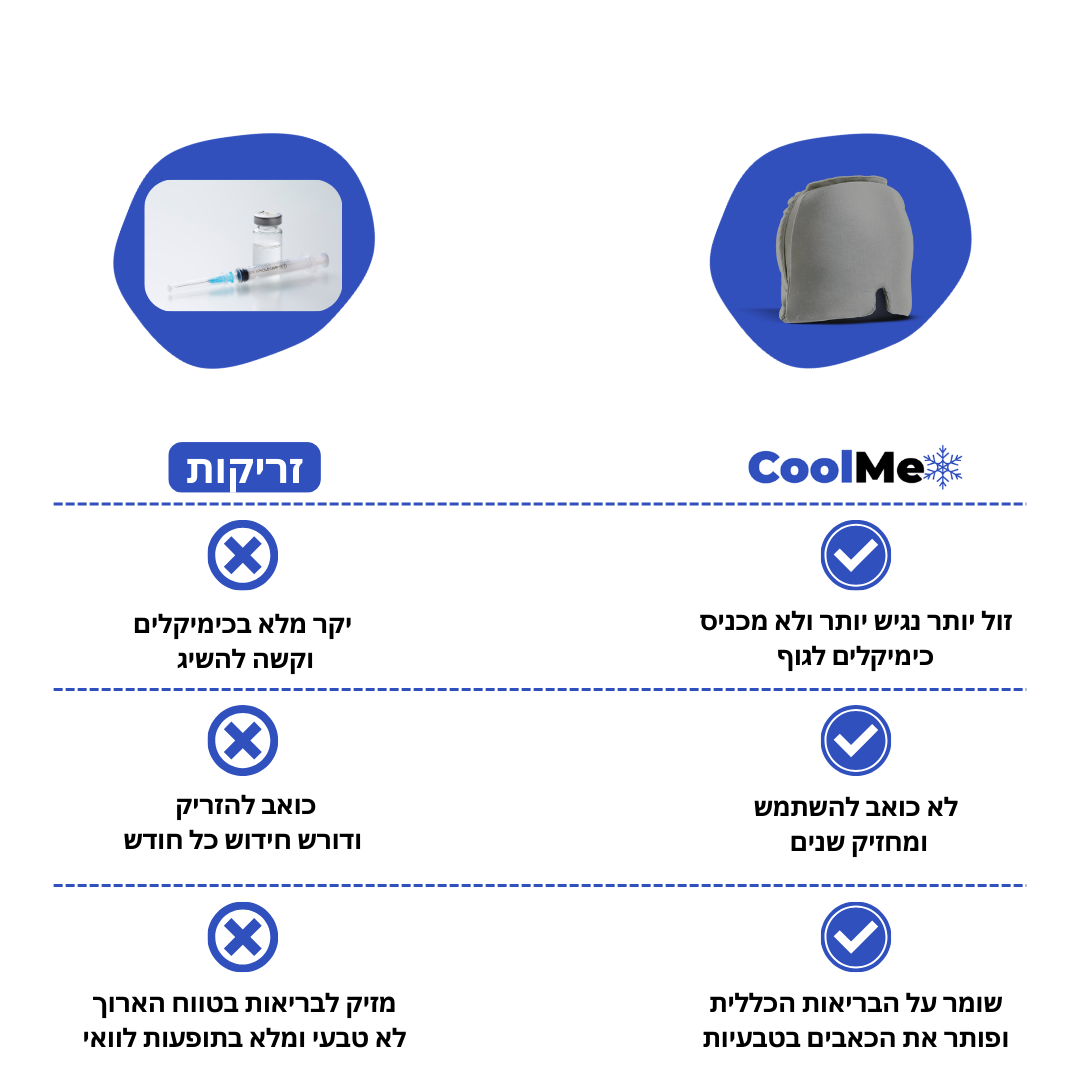 לא. CoolMe שומרת על טמפרטורה אחידה ונעימה לאורך זמן לא מקפיאה, לא מטפטפת, ולא מחמירה את הכאב.