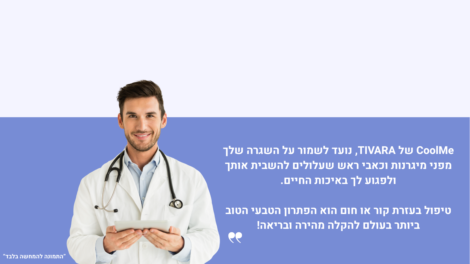 אז אנחנו ממליצים לכם להתייעץ עם הרופא לגבי שימוש בקור וחום להקלה בכאבי ראש, מיגרנות ושאר הדברים ש-CoolMe מיועד להם.